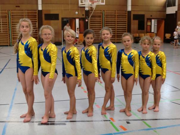 neun Turnerinnen des SV Obrigheim mehr als zufrieden. Was hier in der kurzen